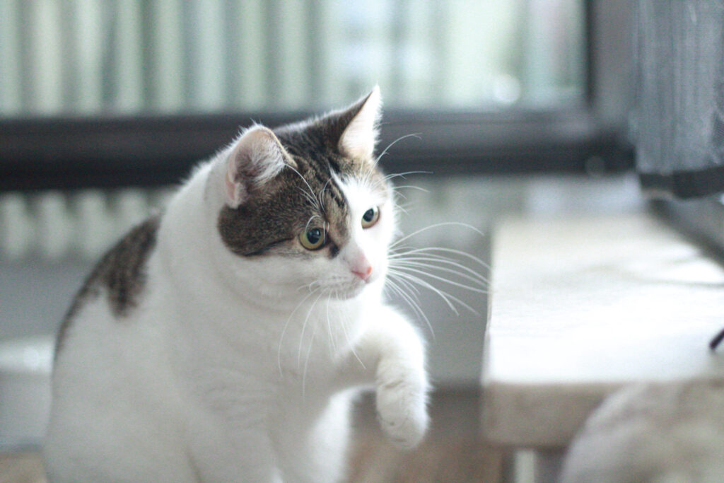A jego kuchenne przygody? To osobny rozdział! Loluś to smakosz nad smakosze. Uwielbia towarzyszyć człowiekowi w gotowaniu – zawsze z nadzieją, że coś „przypadkiem” spadnie na podłogę. Bywa też drobnym złodziejaszkiem – jeśli zostawisz na blacie kawałek indyczka, możesz być pewien, że… już go nie ma 😉 A Lolek właśnie oddala się chyłkiem, z miną niewiniątka i zdobyczą w pyszczku.