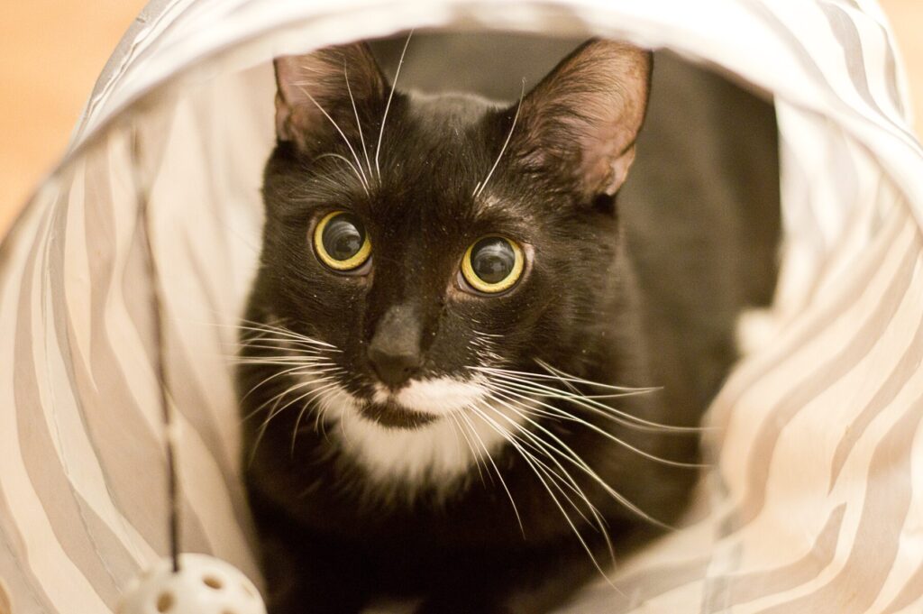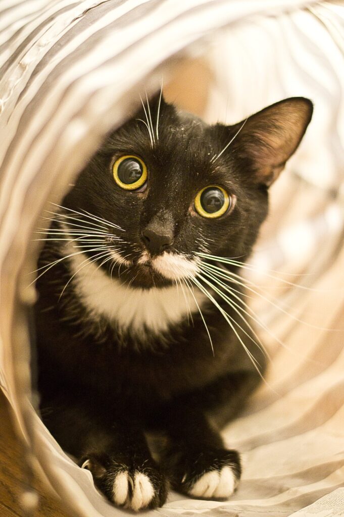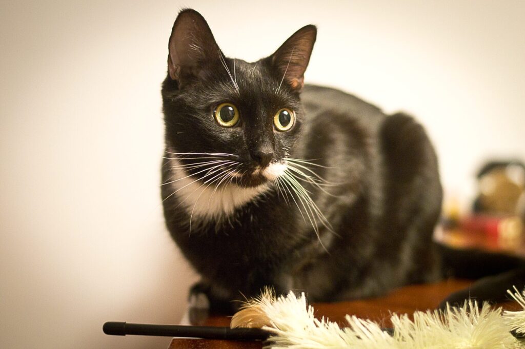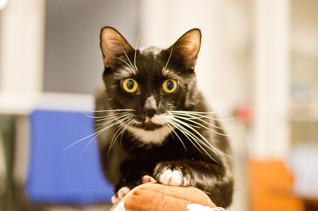 Drapko to około roczny kocurek, który – mimo trudności zdrowotnych – nie traci energii i radości życia. To wykastrowany, młody kawaler, który kocha inne koty, zaczepia je do zabawy i zaraża swoją ciekawością.