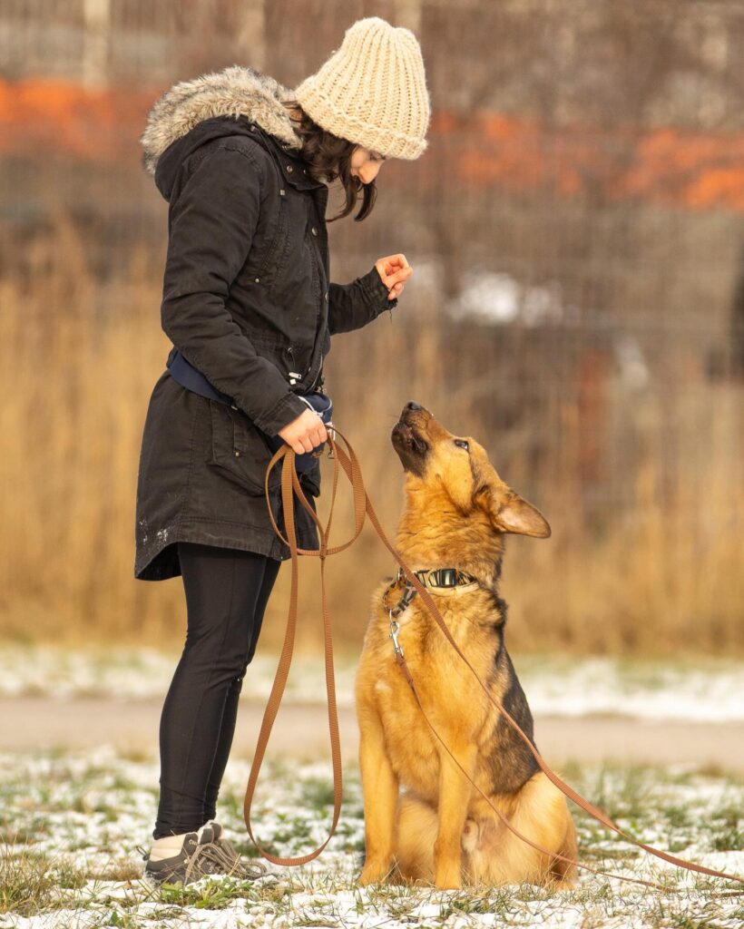 • pozwala na zabiegi pielęgnacyjne (kąpiel, czesanie, obcinanie pazurów, oglądanie łap)