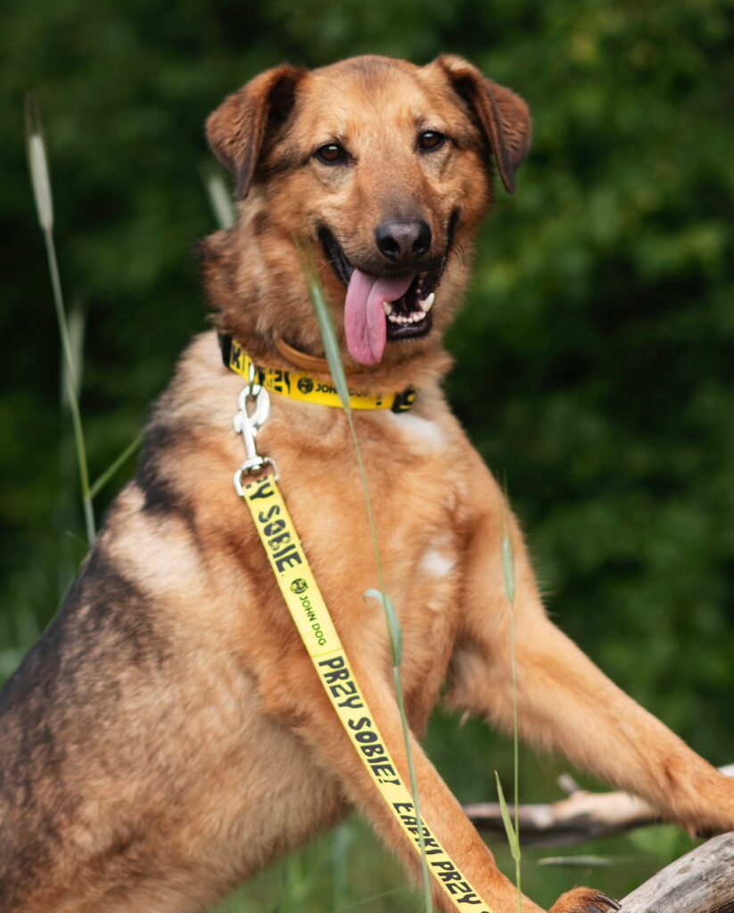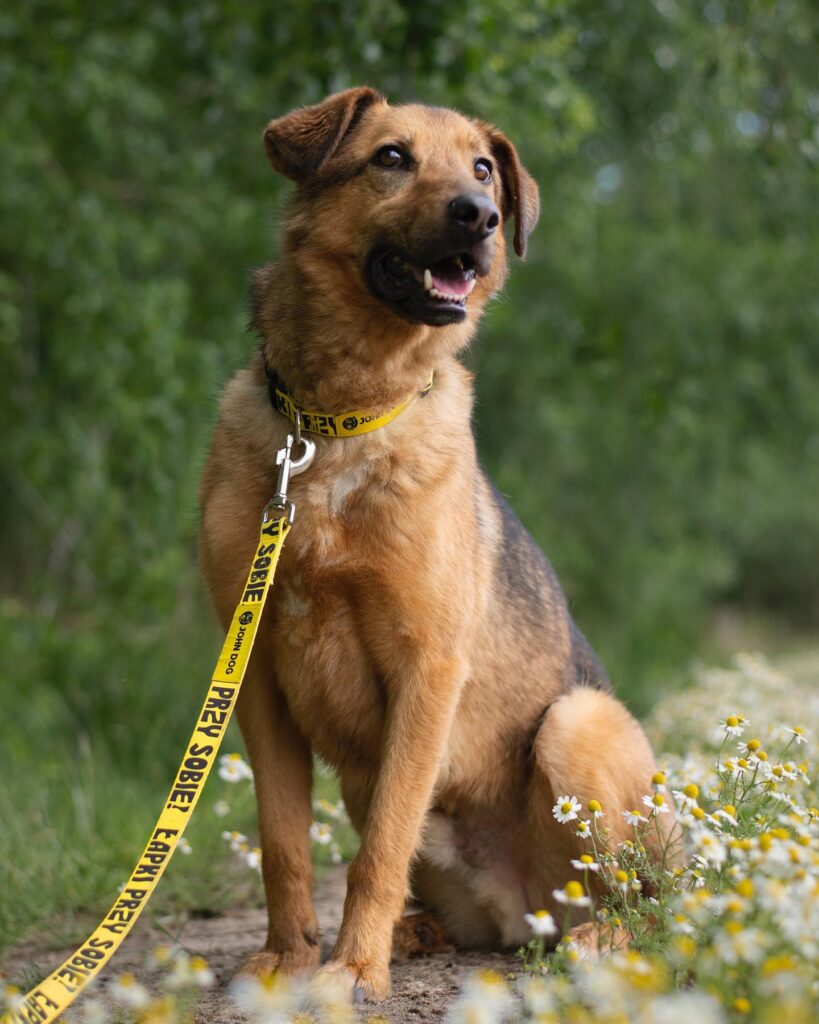 • pięknie chodzi na smyczy, nie ciągnie! spokojnie i grzecznie spaceruje obok człowieka