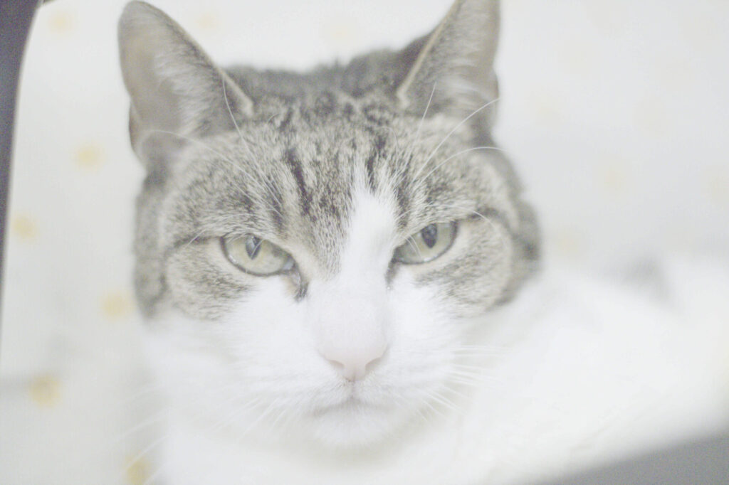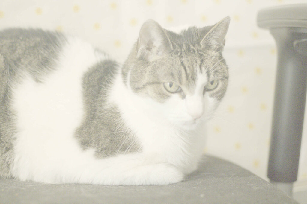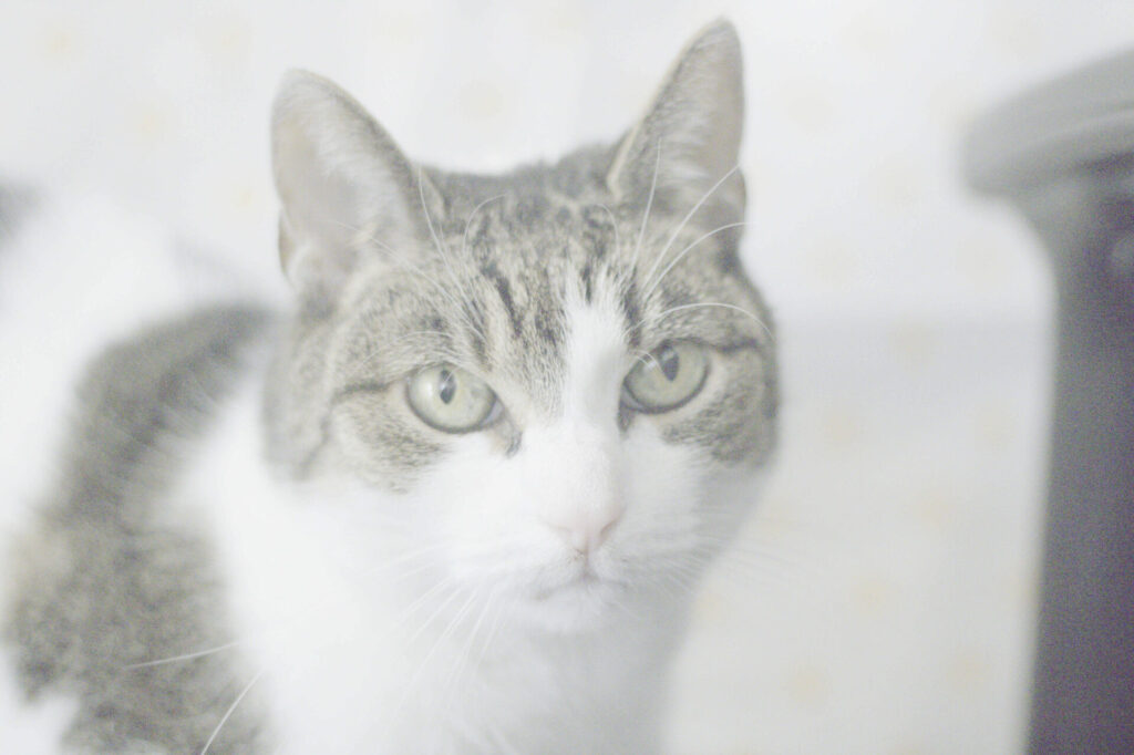 To kotka wyjątkowa – głucha, spokojna, raczej indywidualistka. Nie szuka kocich przyjaźni, ale też nie wchodzi w konflikty. Z człowiekiem bywa jeszcze nieśmiała, jednak gdy poczuje się bezpieczna, pięknie mruczy i pokazuje, że kontakt sprawia jej prawdziwą przyjemność.